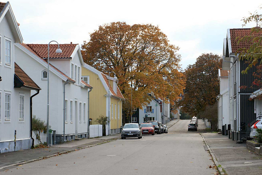 Den först utlagda gatan blev Sparregatan på 1870-talet. Bro byggdes till Kvarnholmen först år 1878 och det betydde snabbt utökad användning av ön som bostadsområde. Ny stenbro byggdes 1913 och den ersattes 1972 av en betongbro. Till Varvsholmen byggdes bro 1928.