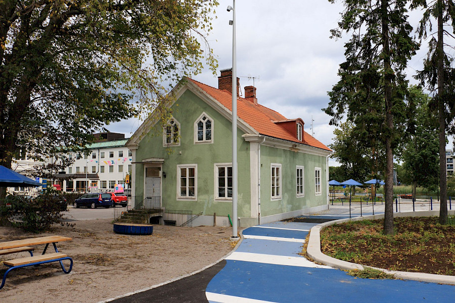 Bernhardinaskolan öppnade 1837 och skulle vara en skola, där fattiga och värnlösa flickor i staden kunde erhålla kostnadsfri undervisning i läsa, skriva och räkna samt sy, spinna och väva. Skolan uppkallades efter kung Karl XIV Johans gemål Desirée som även hette Bernhardina och skänkte 150 riksdaler till skolan. Skolan var till en början inhyrd i artilleriets f d kasernbyggnad där även Lancasterskolan hade sina lokaler med vilken den till viss del delade lärare. En helt egen byggnad fick skolan när man 1892 flyttade in i ett nybyggt hus på nuvarande Unionsgatan 20.