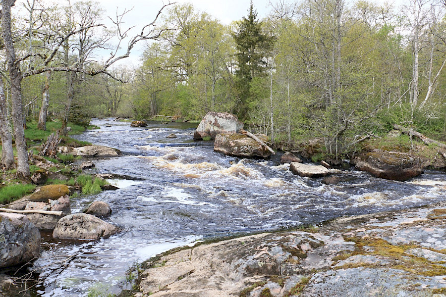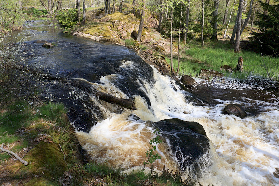 I en kvill av Emån i närheten av Grönskog finns en starkt forsande vattensträcka och ett mindre vattenfall. Boholmsfallen ligger ino Åby naturreservat