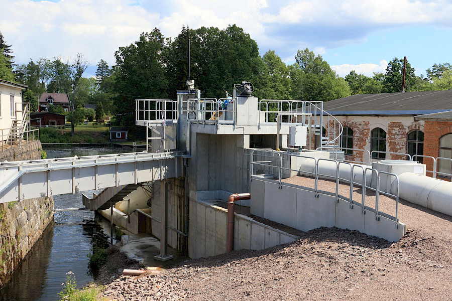Vid kraftverket finns en fiskskruv som ska hjälpa vandrande fisk att ta sig förbi kraftverket.