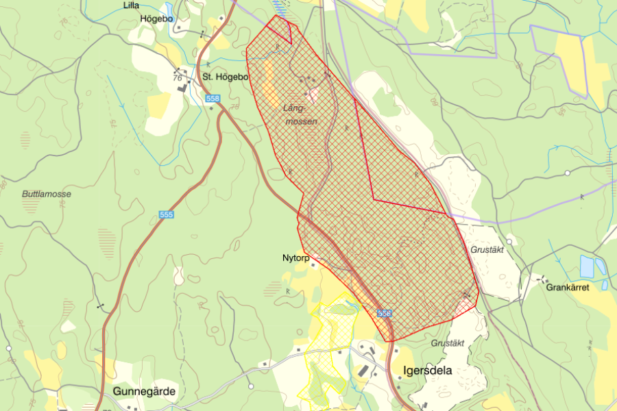 I norra delen av området har en mosse utbildats i en stor åsgrav. Mossen är tallbevuxen och av skvattramtyp. Igersdela åsnät är av riksintresse för naturvården.