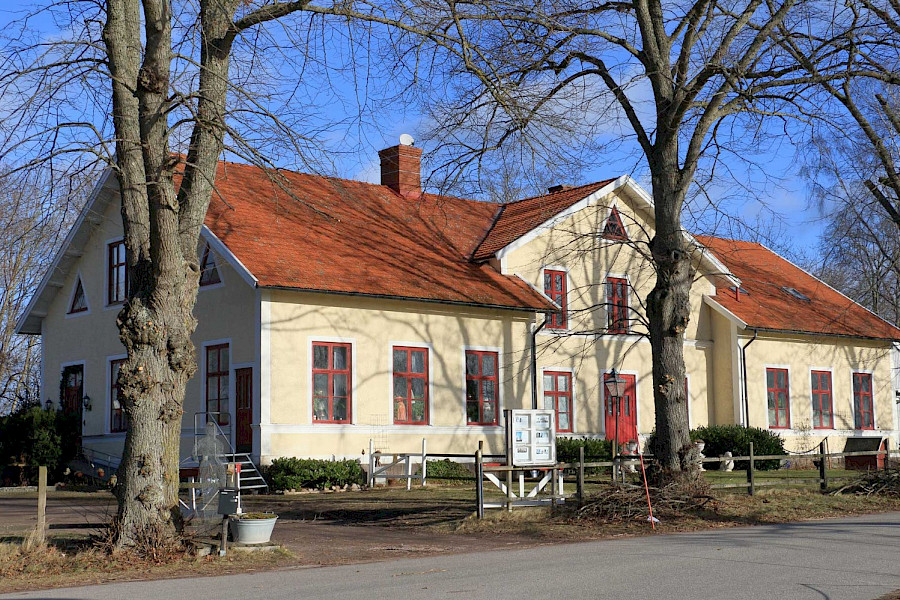 Caféet ligger i en av de gamla skolsalarna i den gamla skolan som byggdes 1880. Skolan lades ner 1968.