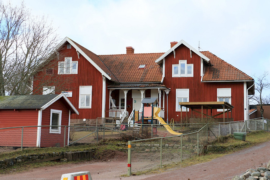 Röda skolan byggdes 1905 och innehöll ursprungligen tre klassrum och en lärarbostad. Huset användes som skola fram till 1951 då den nuvarande Rocknebyskolan var färdig. Den nya skolan hade ingen gymnastiksal förrän 1967 och två sammanslagna klassrum i Röda skolan fick därför användas till gymnastiksal fram till denna tid. Samtidigt med skolan fungerade huset som församlingshem och sammanträdeslokal för en del föreningar.