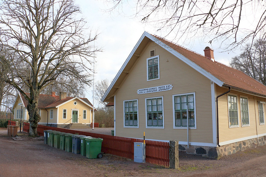 Av de nuvarande byggnaderna är den som ligger närmast kyrkan den äldsta. Den uppfördes 1820. Byggnaden i mitten med utsirad veranda är lärarbostaden.