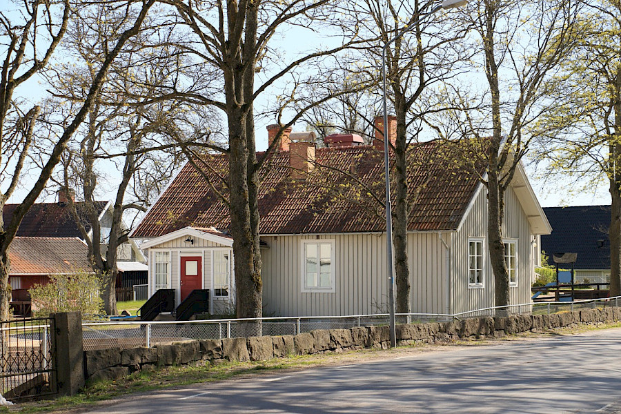 Mitt emot kyrkan i Hagby ligger två gamla skolbyggnader. Södra skolan byggdes 1916.
