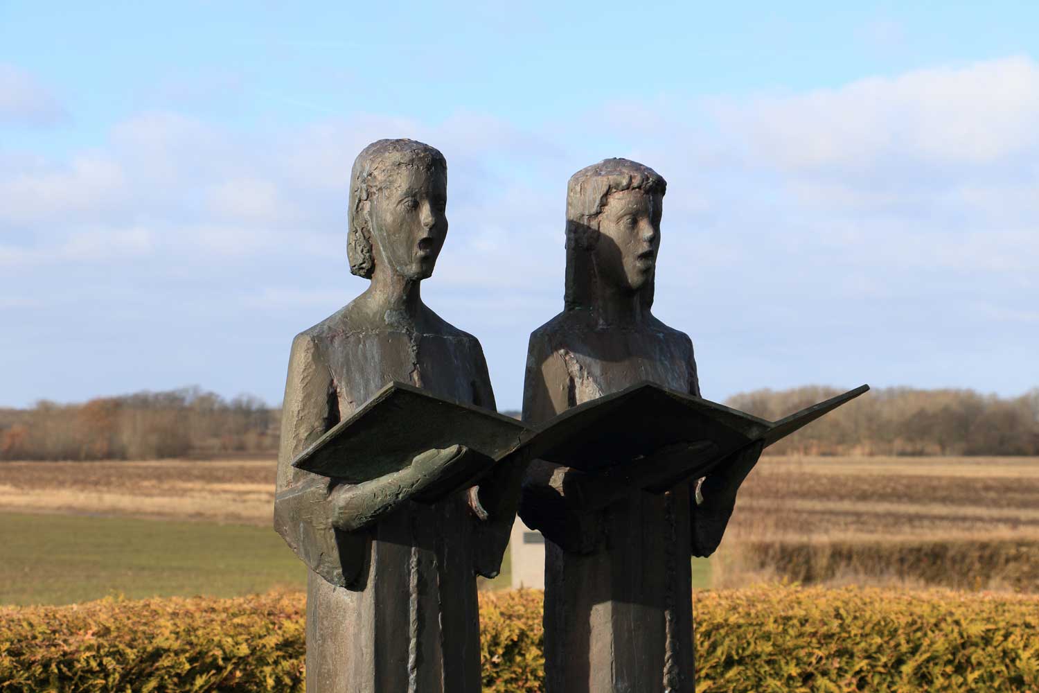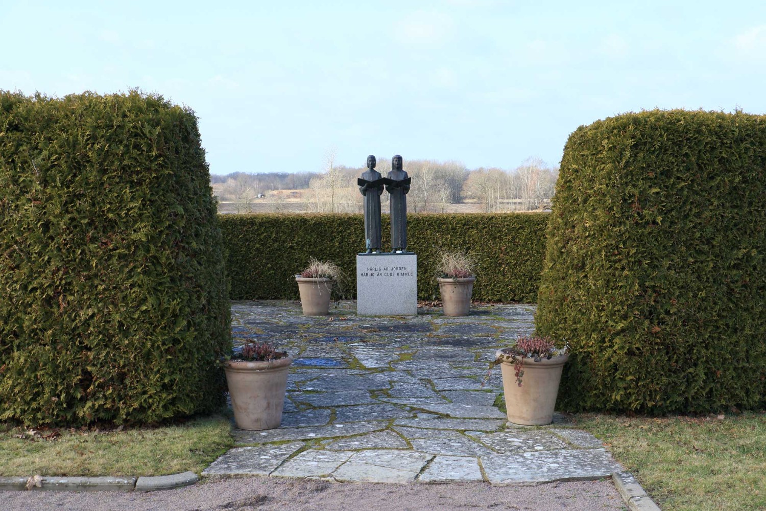 Skulpturen Duo av Thomas Qvarsbo, 1986, står i minneslunden vid Kläckeberga kyrka.