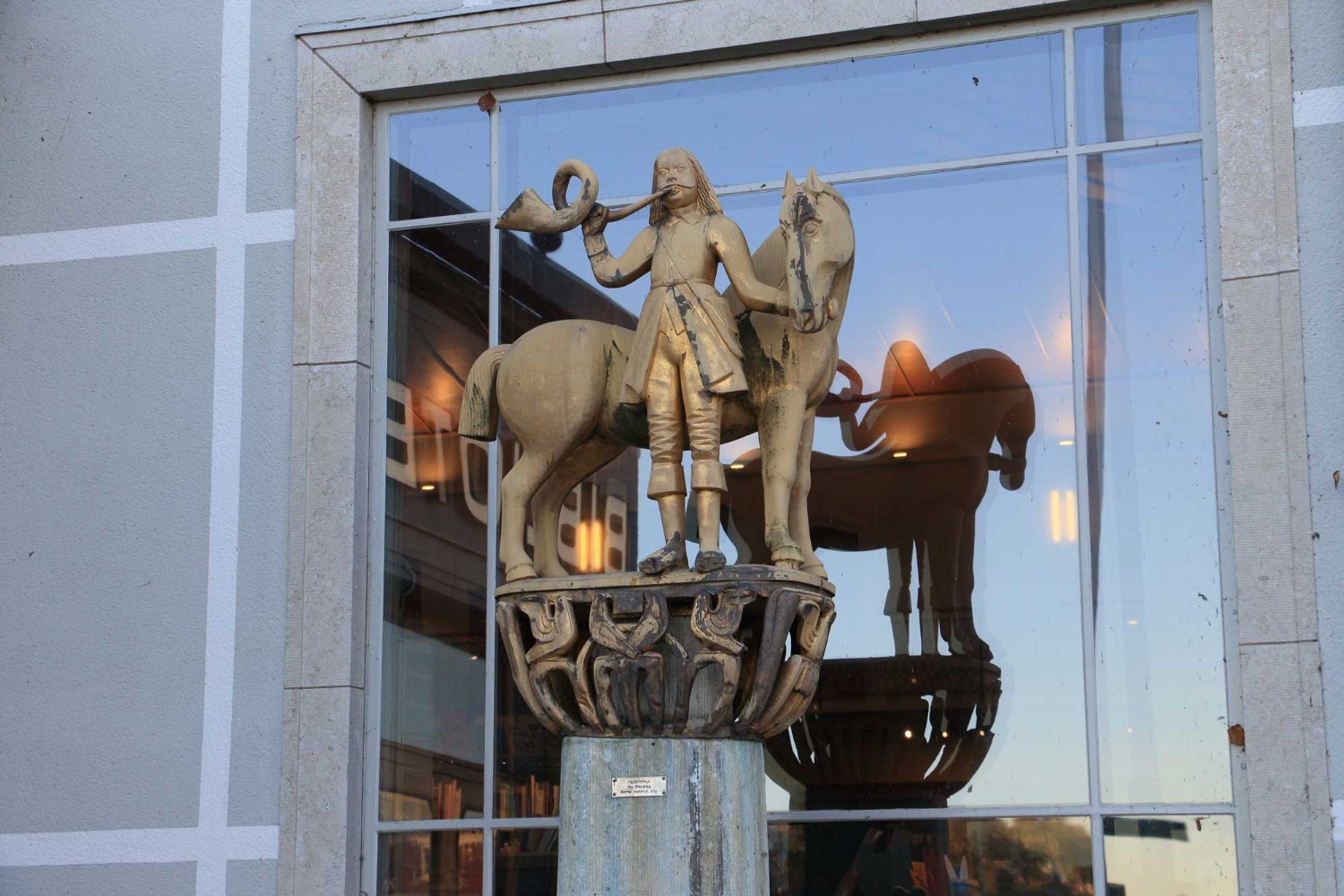 När Kalmars gamla posthus invigdes år 1947 beställde Kalmar kommun en passande skulptur. Skulpturen är en symbol för det gamla postväsendet då bönder vidarebefordrade brev och annat. Skulpturen utformades av Stig Blomberg. Den finns vid entré till huset, som idag är bibliotek.