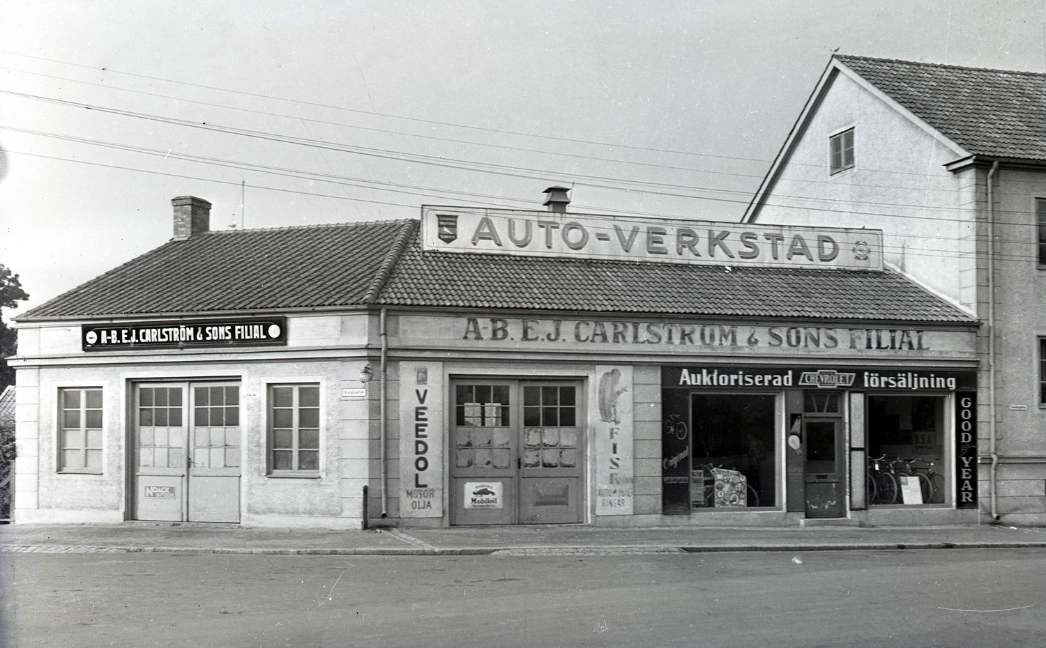 Stig Nilssons cykelaffär ligger på Södra vägen i Kalmar. År 1937 var här en bilverkstad: E.J. Carlströms bilverkstad.
