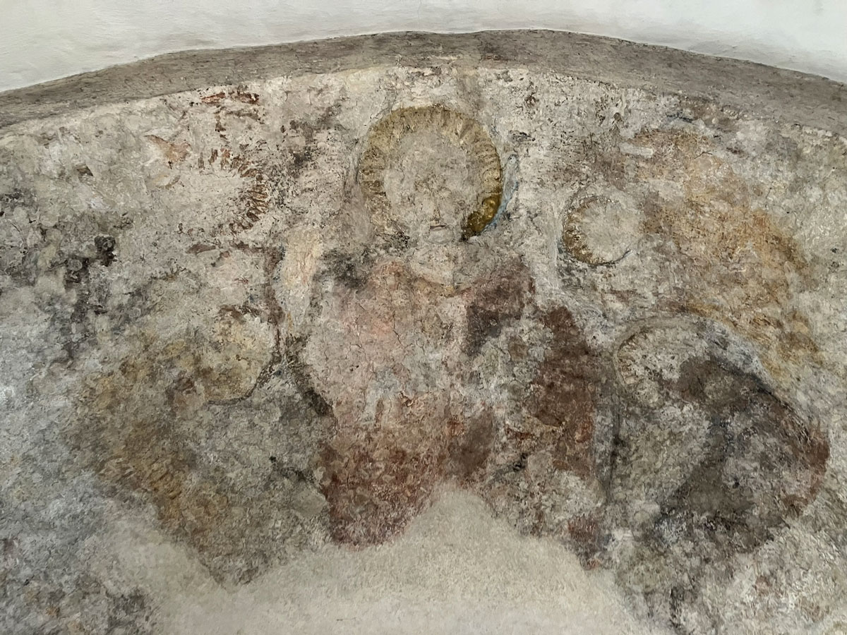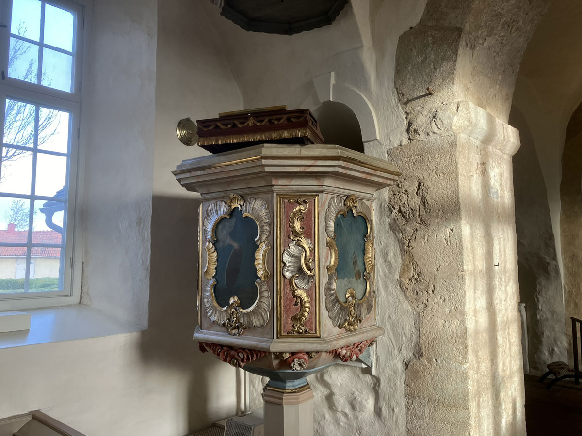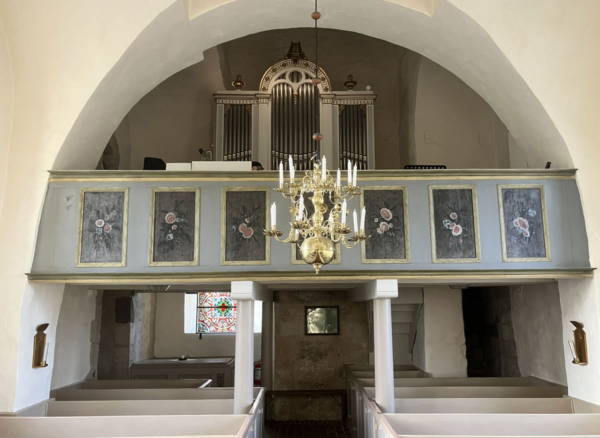 Kyrkan är uppförd av sandsten och har tak av tjärat träspån. Den är idag utan puts så att murverket syns. Man fick år 1997 tillbaka den medeltida dopfunten, som under en tid funnits på Statens historiska museum. Funten har runinskrift huggen av stenmästare Jakob i början av 1200-talet. Altarskivan är medeltida med relikgömma.