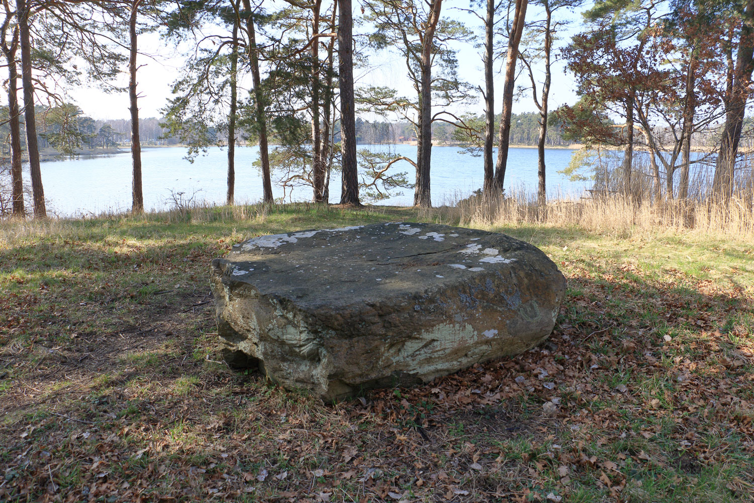 På Svinö norr om Kalmar centrum finns detta stenblock, 2,2 x 2 m och 0,8 m högt. Plan översida. Enligt uppgift har det tidigare runt stenblocket funnits fem andra, mindre stenblock att sitta på.