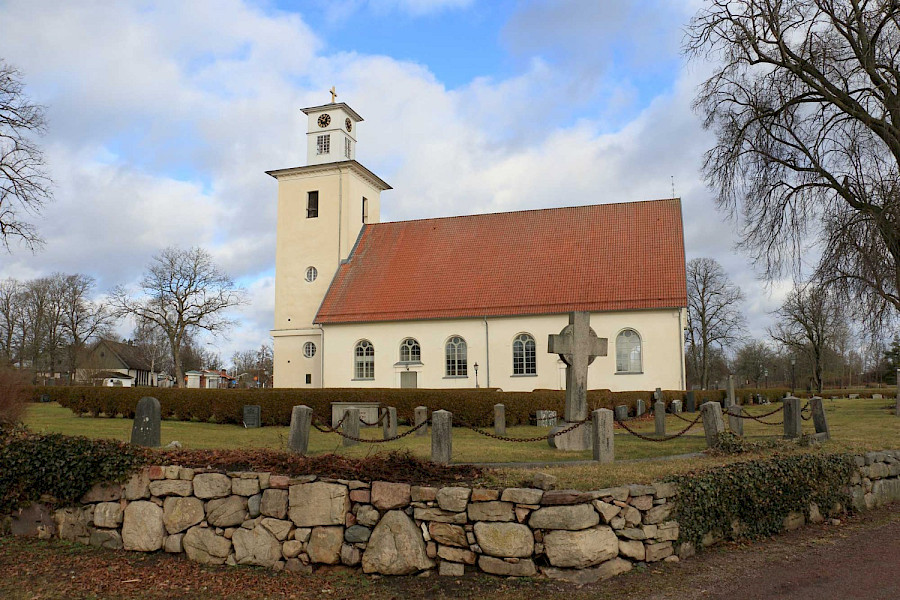 Ryssby kyrka byggdes i sten 1749-1750 och ersatte då en medeltida försvarskyrka i tre våningar från 1100-talet. Tornet tillkom 1837. Kyrkan hade flera äldre inventarier, bl.a. en tavla från 1400-talet, altaruppsats och begravningsvapen från 1600-talet samt en Mariaskulptur från 1700-talet. Takmålningarna från 1928 var gjorda av Einar Forseth och altartavlan från 1962 var målad av Ivar Morsing. En minnestavla som ännu finns kvar på kyrktornets södervägg erinrar om Johan Helmich Roman som bodde på Haraldsmåla gård i socknen och ligger begravd på kyrkogården.