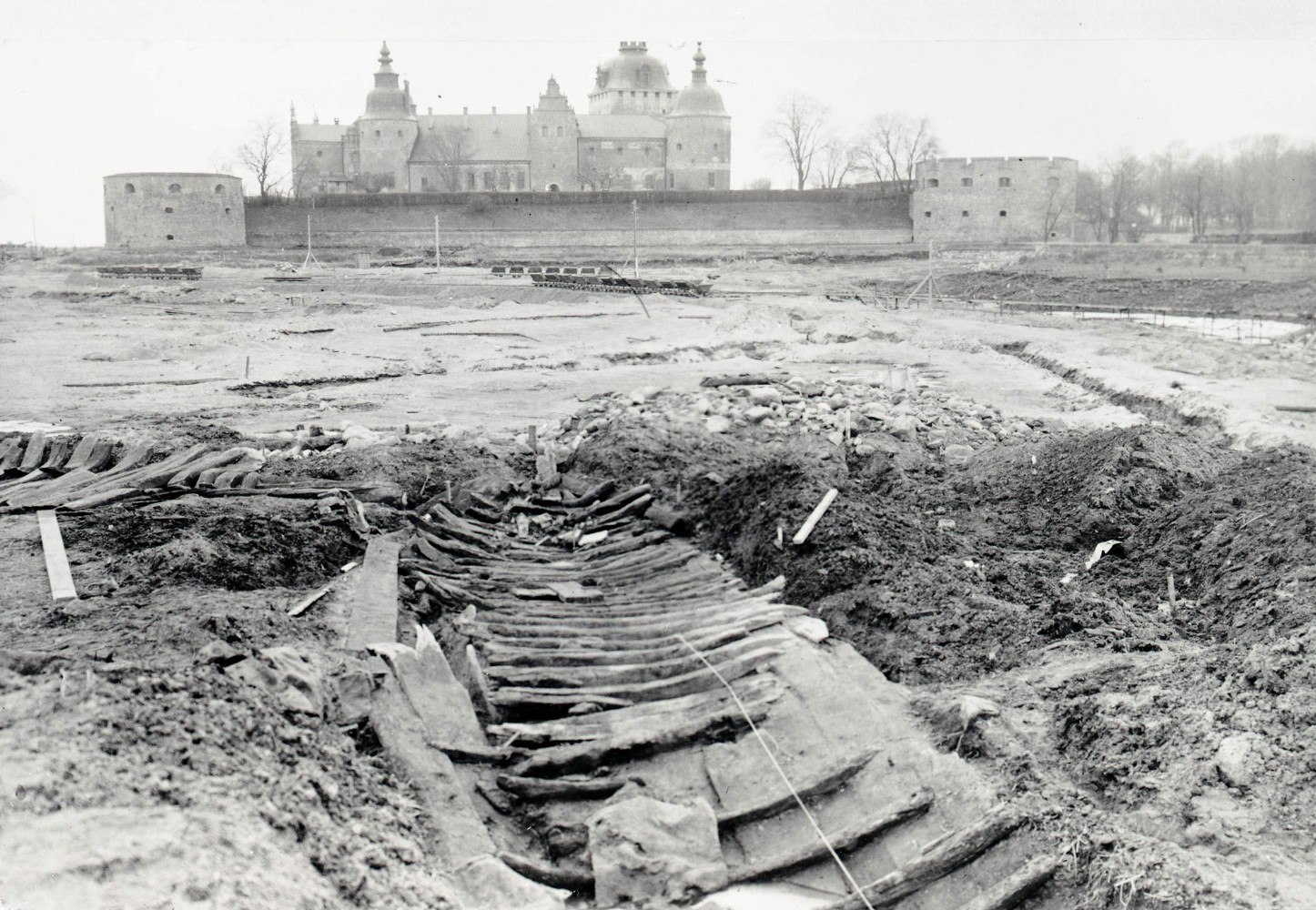 Vy från utgrävningen av Slottsfjärden i Kalmar 1933. Foto: A E Thulin DigitaltMuseum Kalmar Läns Museum Public Domain.
