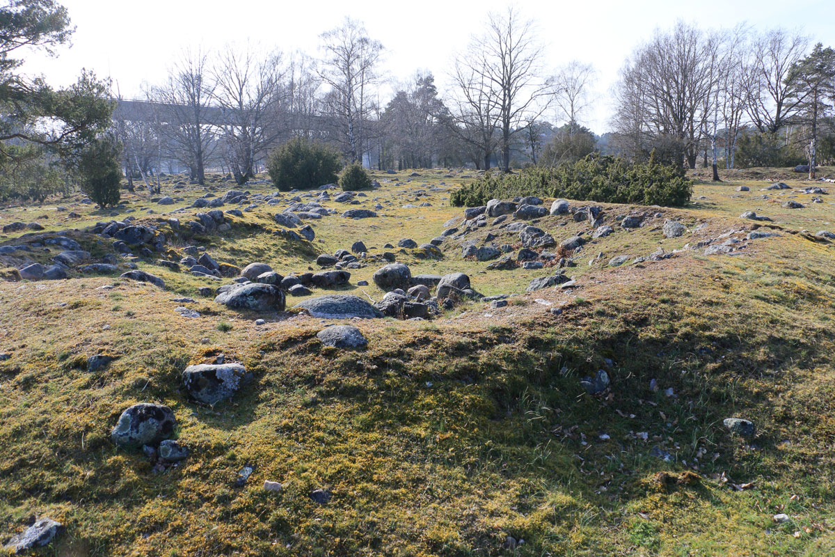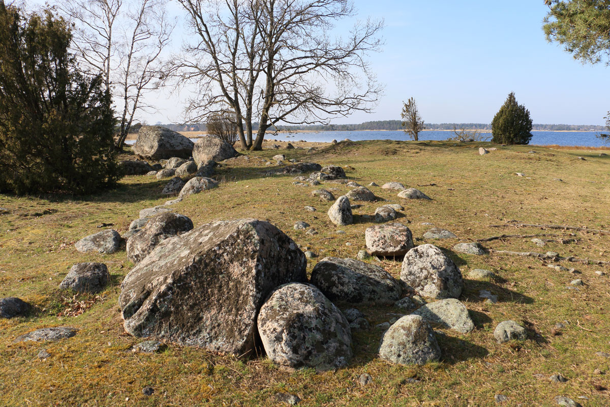 Här ute på Svinös yttersta udde ligger resterna av en fast försvarsanläggning, en skans, från 1600-talet. Vallarna som syns här är allt som återstår. Kalmar har alltid varit en befäst stad. Under medeltiden var bara tre svenska städer befästa, nämligen Kalmar, Stockholm och Visby. I inledningen av Kalmarkriget 1611-1613 anlade såväl danskar som svenskar i hast ett stort antal befästningar runt staden. En av de danska befästningarna byggdes här på Svinö. Svenskarna försvarade sig från tre hopkastade skansar; en på södra Svinö, en på Jutnabben samt en på norra Skallö. Där vilar idag en av bropelarna till Ölandsbron.